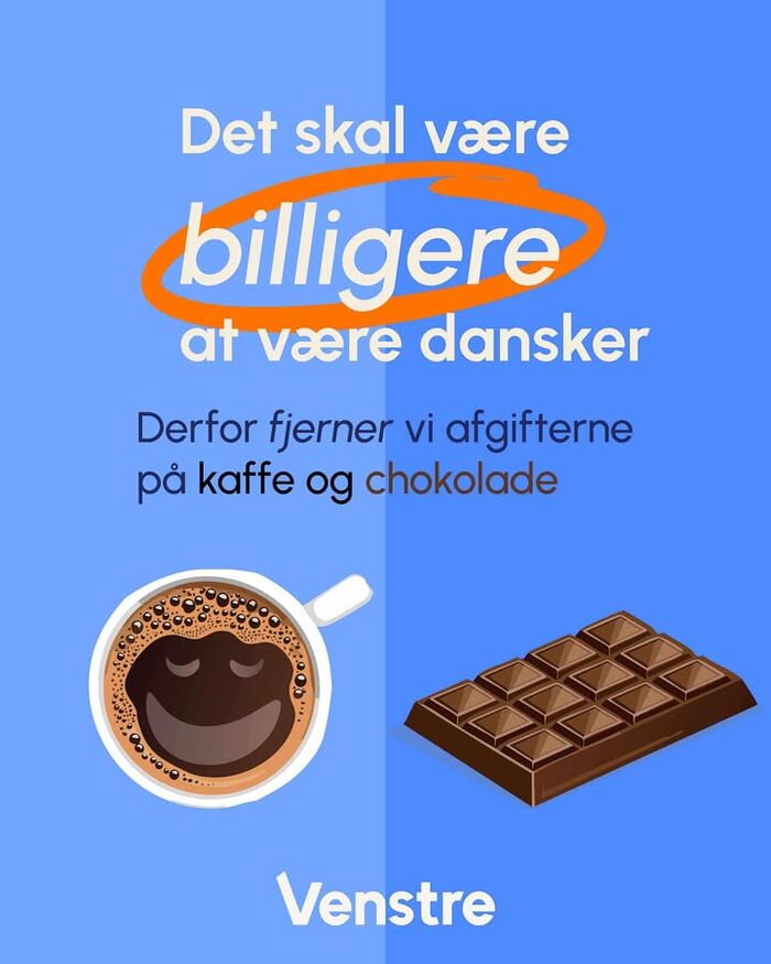 I dag er en dejlig dag! Og ikke kun fordi Venstre har sommergruppemøde, og jeg skal se alle mine kollegaer. Også fordi vi i dag kan fortælle, at vi fjerner afgiften på chokolade og kaffe.