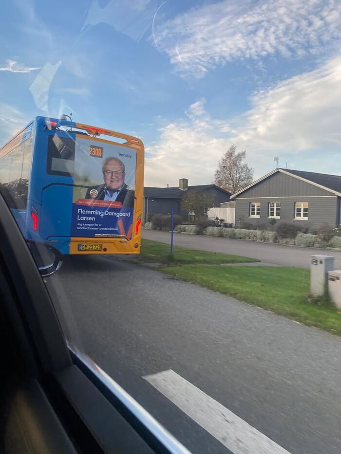 På vejen mødte jeg igen idag mange V-bannere, plakater og reklamer - herunder denne fra min gode tidl kollega i både Folketinget og regionsrådet i Region Sjælland Flemming Damgaard Larsen har været folkevalgt i 50 år… og har fortsat stor gejst og engagement i sit politiske virke. Imponerende👏👍💪💙